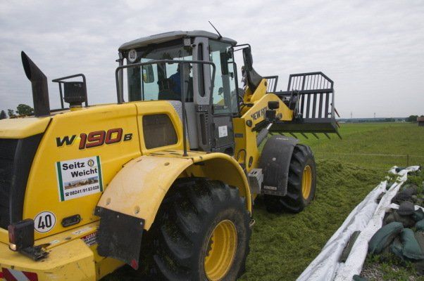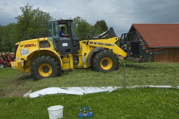Für die Verteilung und Verdichtung der Grassilage werden Radlader und Walzschlepper verwendet.