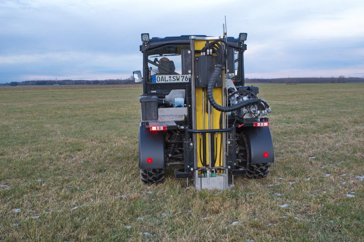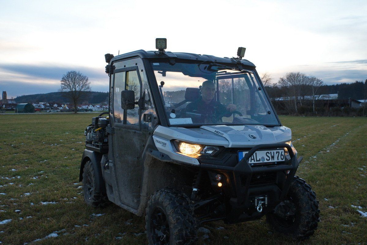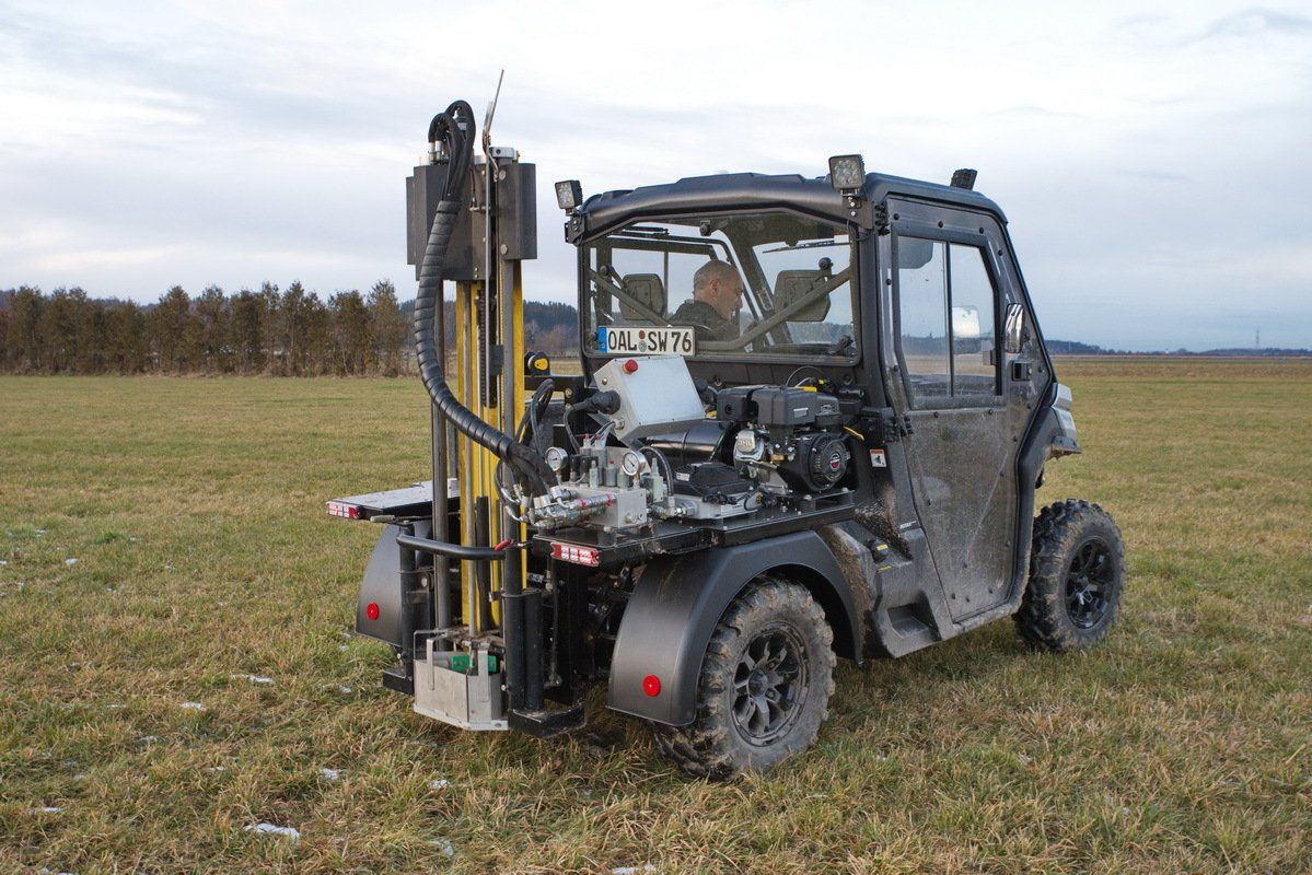 Extra leichtes Fahrzeug mit breiter Bereifung für geringsten Bodendruck.